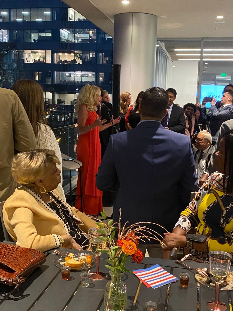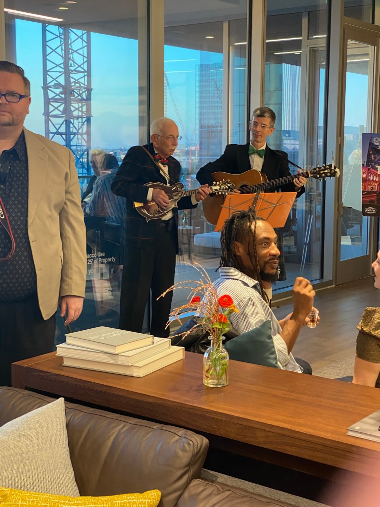 At the reception on October 10 at the British Consulate in Nashville, they honored the late Queen Elizabeth II by serving a variety of Her Majesty’s favorite foods, including cucumber sandwiches, mango truffles, and her favorite aperitif of vermouth and gin. Besides the honored finalists, many of the sponsors of TRTN were in attendance as were several of the judges, Nashville’s deputy mayor, Brenda Haywood, and a handful of music executives.