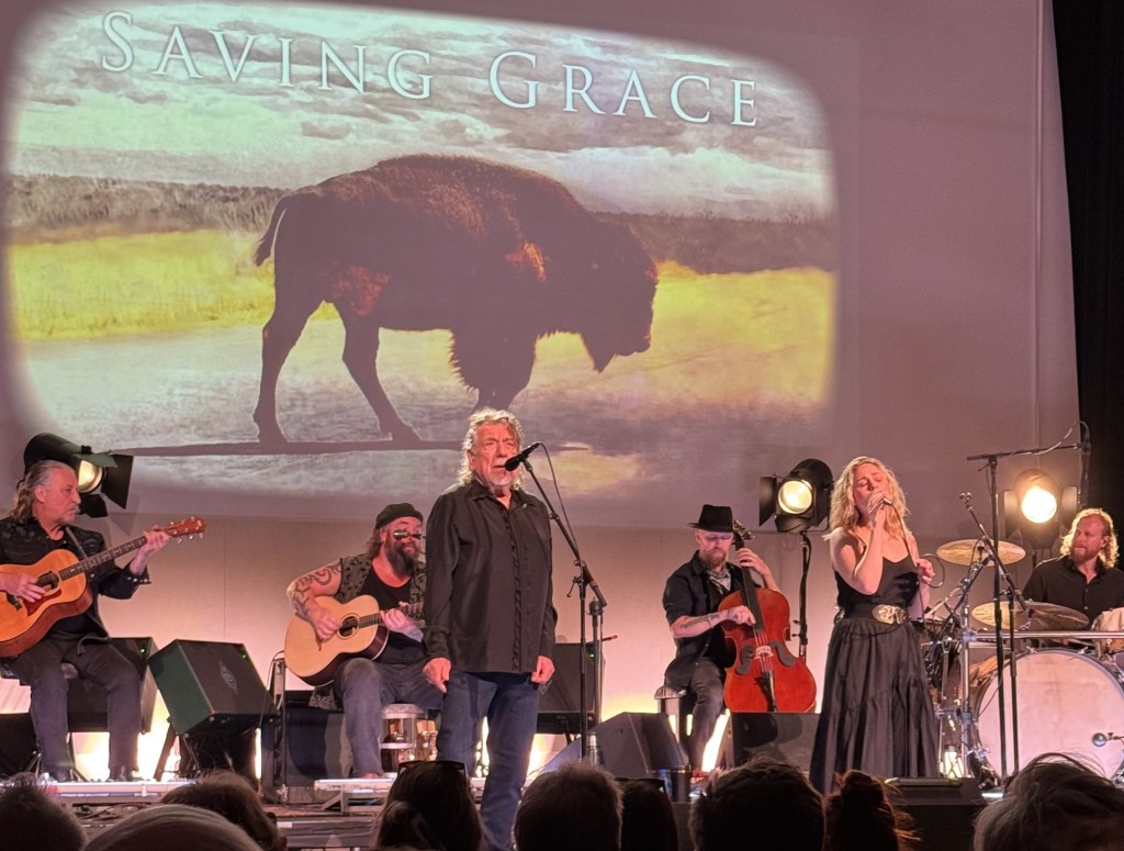 Because the evening at the Riverside Revival was part interview, part music, the Saving Grace band performed an abbreviated setlist. From the album, they did “Gospel Plow,” “It’s a Beautiful Day Today,” “Higher Rock,” “As I Roved Out,” and “Everybody’s Song.” Then Robert Plant and Saving Grace graciously played the Zeppelin cover, “Ramble On.” A sample of the band can be found in this video, “Higher Rock,” from the BBC.